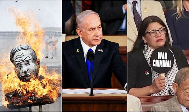 Protests and ArrestsThousands of protesters marched to the US Capitol, voicing their opposition to Netanyahu's speech. Inside the House of Representatives chamber, six demonstrators were arrested before Netanyahu began his address. Outside, protesters burned effigies of Netanyahu and American flags, with crowds carrying banners calling for a ceasefire in Gaza and Netanyahu's arrest. Some banners featured Bible verses advocating for peace, while others depicted Netanyahu as a wanted criminal.
